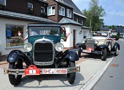 von 12: Frühstückspause: Die erste Tagestour durch das Erzgebirge führte die Teams unter anderem zum Café Rotter in Schellerhau, einem Ausflugslokal mit über hundertjähriger Familientradition.