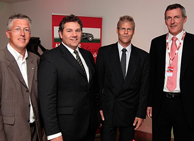 von 7: Dank an Dieter Roth, Christian Polzer, Marc Gounaris und Reiner Jaspers vom Partner DEKRA. Sie stellten ihr Testgelände am Lausitzring für die Wertungsprüfungen zur Verfügung.