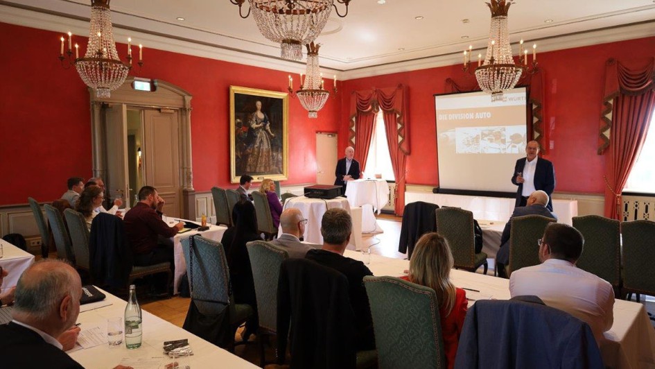 von 13: Jörg Weichsel, Leiter Key Account Management Auto bei der Adolf Würth GmbH & Co. KG und AUTOHAUS-Chefredakteur Ralph M. Meunzel begrüßen die Teilnehmer.