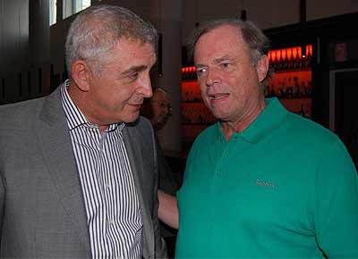 von 18: Impressionen von der Abendveranstaltung der 20. AUTOHAUS SommerAkademie auf Sylt. Im Bild: Ed Goedert, CEO autopolis, Luxemburg wird herzlichst vom Gastgeber Prof. Hannes Brachat begrüßt. (Alle Fotos: Prof. Anita Friedel-Beitz)