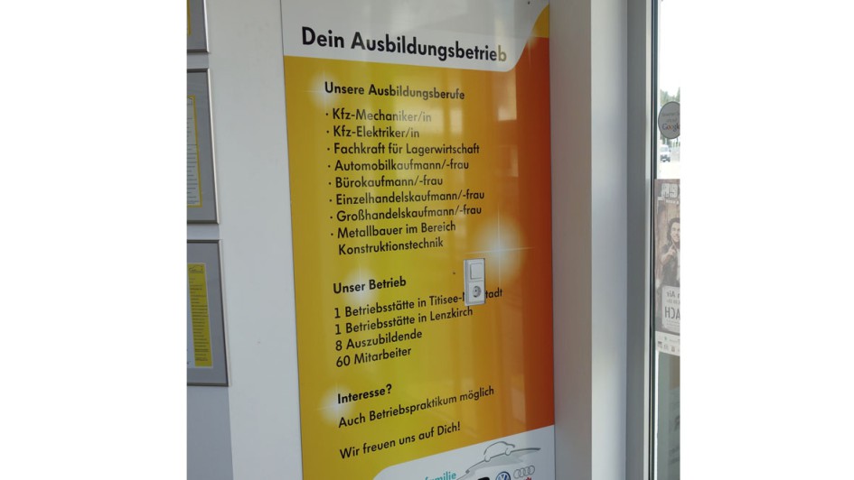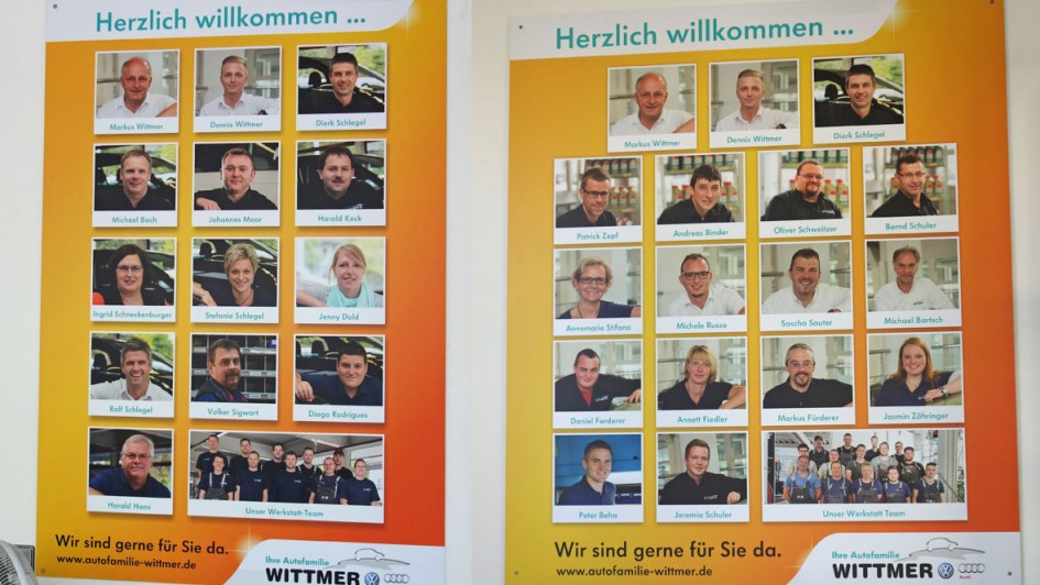 von 15: Das Autohaus personalisieren. Mit Abbildungen des kompletten Teams. Hier die Mitarbeiter vom Standort Lenzkirch (links) und Titisee-Neustadt.