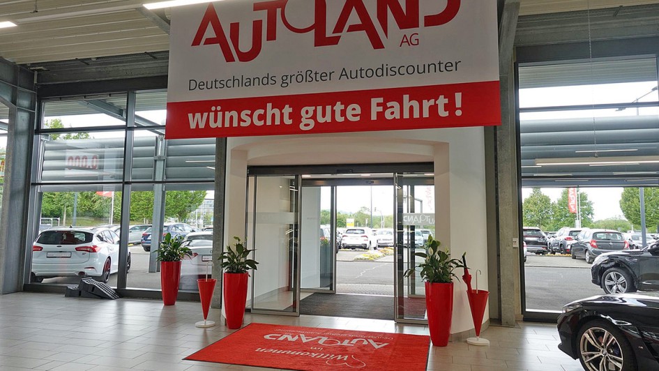 von 16: Der erste Eindruck ist der wichtigste - und der letzte der Bleibende. Dieser wird bei Autoland mit dem Wunsch auf gute Fahrt gesetzt, eingerahmt von bepflanzten Ständern.
