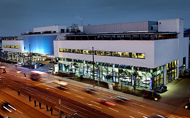 von 6: In einem Jahr Bauzeit enstand auf insgesamt 14.500 Quadratmetern Gesamtfläche ein moderner Betrieb mit 660 Quadratmeter Schauraumfläche und einer Werkstatt mit 20 Hebebühnen.