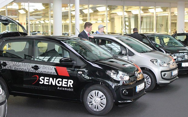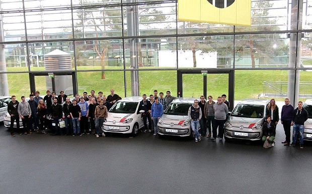von 9: Mitte Februar schickte die Senger-Gruppe aus Rheine über 40 Nachwuchskräfte auf eine besondere Mission: die Abholung von 23 VW Up in der Wolfsburger Autostadt.