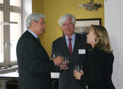 von 11: Die Herren Dösch und Groscurth mit der Galeristin Barbara von Stechow