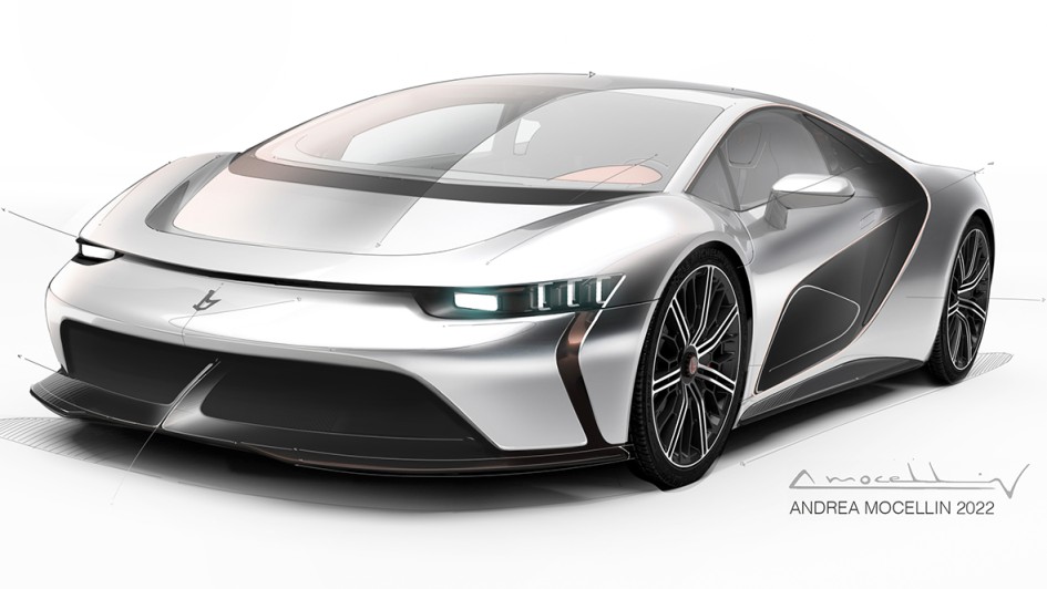 von 3: In der Grundform handelt es sich um einen typisch keilförmigen Zweisitzer, der mit seinen Proportionen unter anderem an avantgardistische Bertone-Konzepte wie den Lancia Stratos Zero aus dem Jahr 1970 erinnern soll.