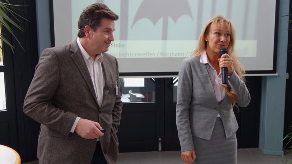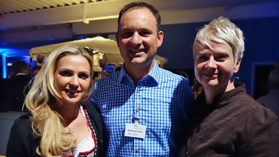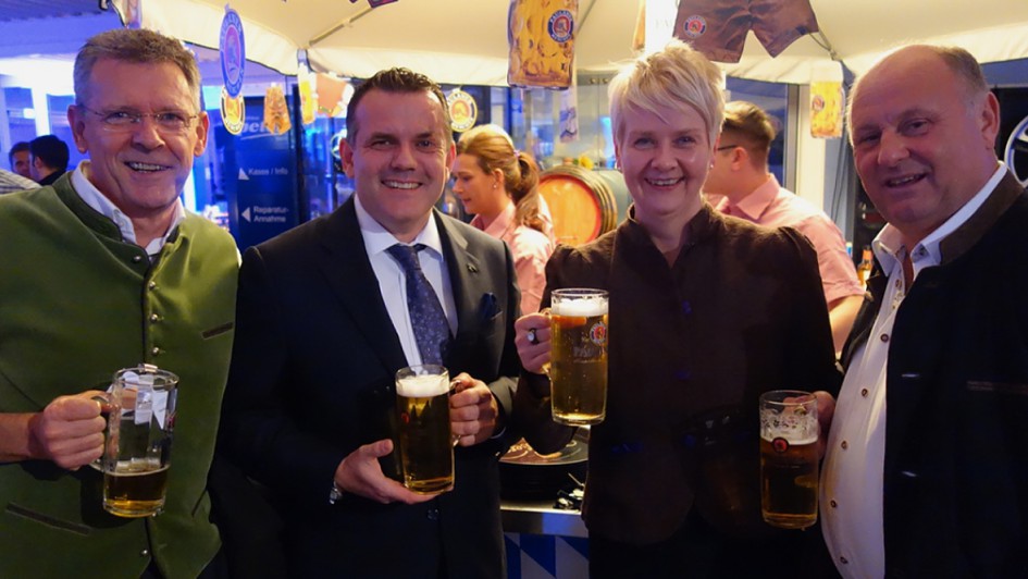 von 22: Vor der Biertheke (v.l.): Hans-Heiner Lüdemann, Steffen Raschig, Director Commercial Verhicles Opel, Birgit Behrens und Helmut Peter. Raschig, Absolvent der BFC Calw, betonte in seinem Grußwort die Bedeutung der Fachschule. Er empfahl eine größere Öffnung für die Ausrichtung Hersteller/Importeure.