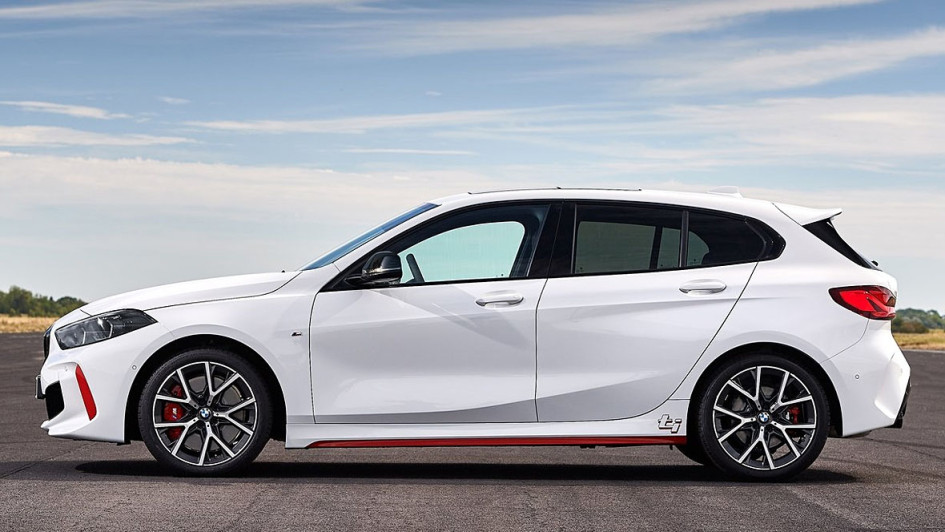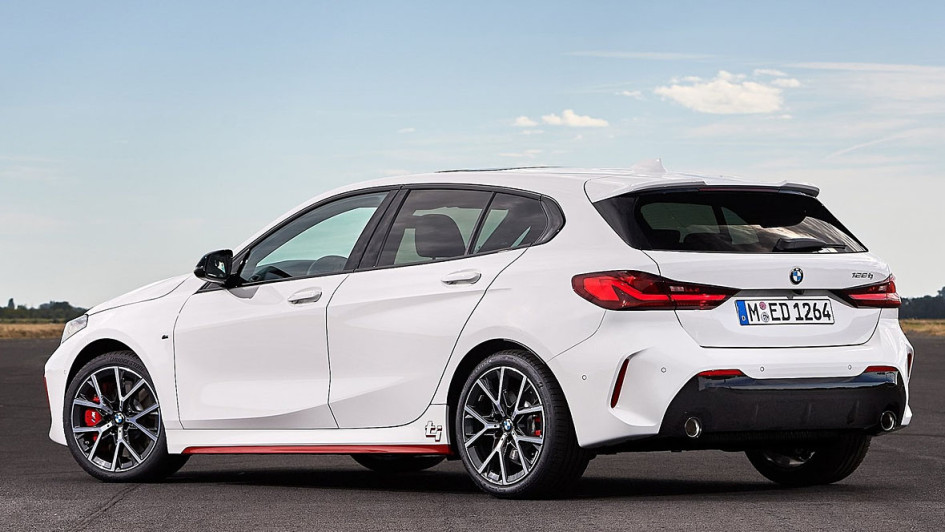 von 8: Optisch setzt sich der Kompaktsportler unter anderem durch eine schwarze Niere, schwarze Spiegelkappen und 18-Zoll-Felgen im Y-Design von den Standardmodellen ab.