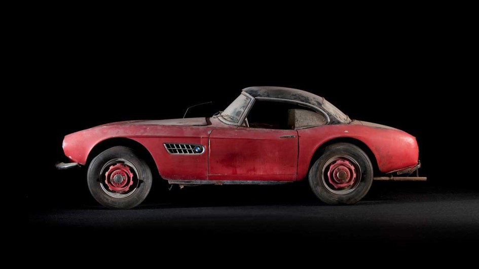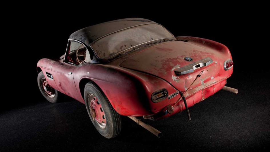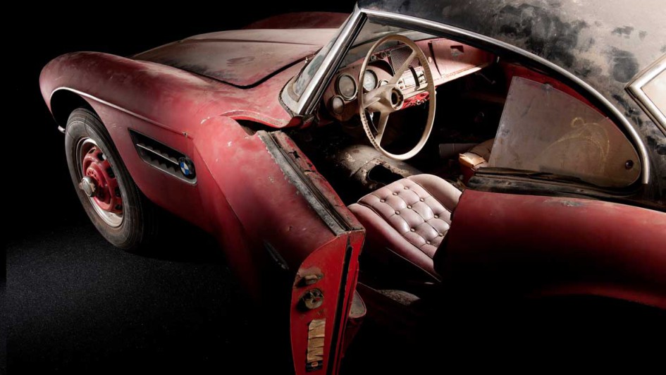von 5: Dann rollt er rüber in die Werkstatt der BMW-Classic-Experten, die viele Monate daran arbeiten werden, den Wagen wieder in seinen glänzenden Urzustand zu versetzen