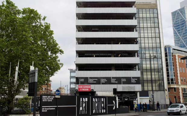 von 17: Art Drive! Die BMW Art Car Collection setzt auf sechs Etagen des Parkhauses NCP Car Park an der Great Eastern Street im Londoner Stadtteil Shoreditch 16 Kunstflitzer in Szene.
