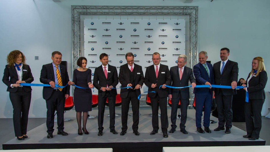 von 10: Oberbürgermeister Guido Till, Anja Entenmann, Wolfgang Wregar (Leiter Vertrieb Entenmann Göppingen), Reiner Pfefferle (Niederlassungsleiter Entenmann Göppingen), Thomas Jensch (Leiter Service Entenmann Göppingen), Werner E. Entenmann, Martin Thiel (Leiter Vertrieb BMW), Michael Fritze (Präsident Verband Deutscher BMW Vertragshändler)
