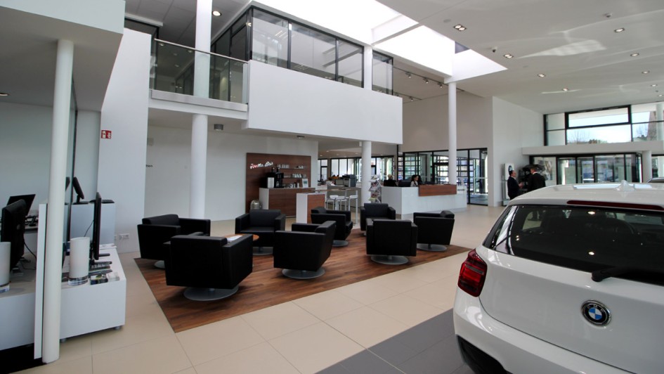 von 10: Der Betrieb auf dem rund 10.000 Quadratmeter großen Gelände bietet einen großzügigen Ausstellungsraum samt Auslieferungsbereich, eine Werkstatt mit insgesamt 20 Arbeitsplätzen und Beratungsplätze für Verkauf, Service, Teile und Zubehör.