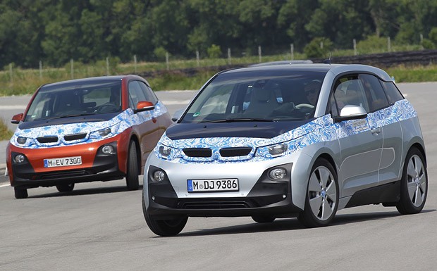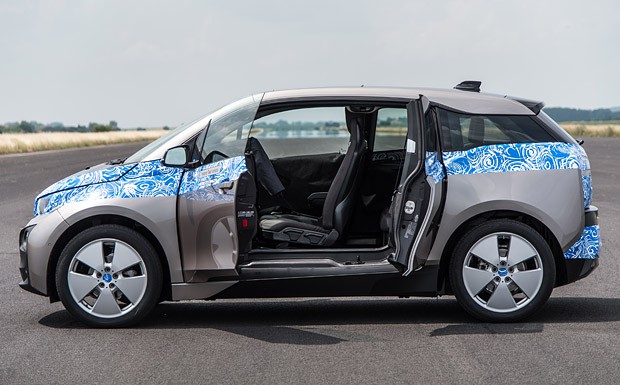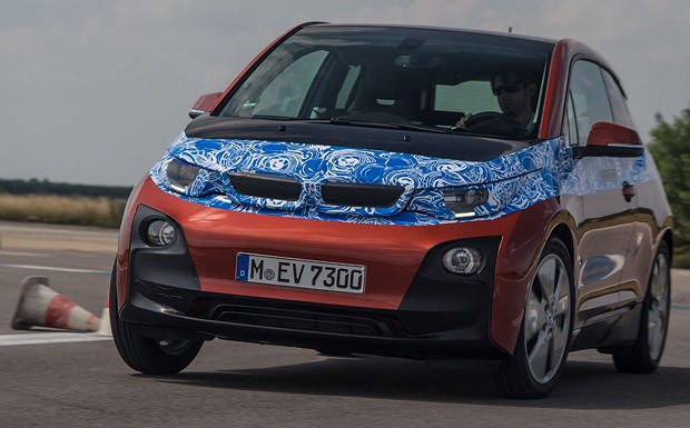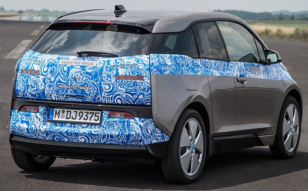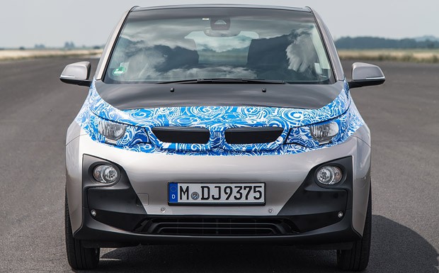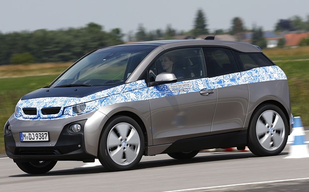von 12: Ab Ende des Jahres soll es den BMW i3, das neue Elektroauto des bayrischen Herstellers zu kaufen geben - bis zur offiziellen Präsentation tarnt sich der Kleinwagen noch mit Folie.