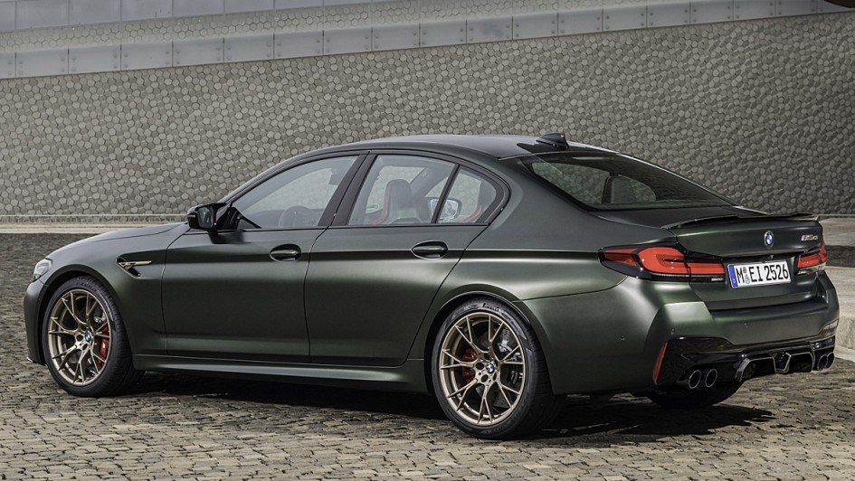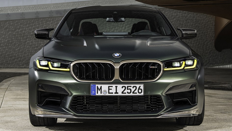 von 8: Äußerlich zu erkennen ist der Top-Fünfer unter anderem an einer Nierenumrandung in der Farbe "Goldbronze", gelb leuchtenden Tagfahrlicht-Einheiten im Laserlicht-Frontscheinwerfer sowie einer speziellen vierflutigen Abgasanlage.