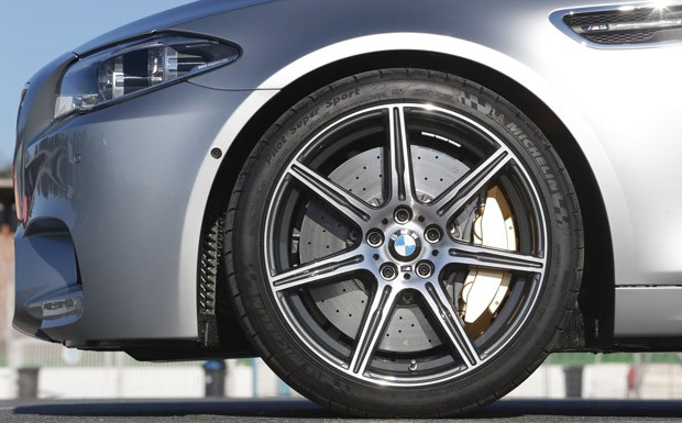 von 10: Das neue Competition-Paket soll die Handling-Eigenschaften der Sportlimousine steigern. Die BMW-Ingenieure haben dafür das Fahrwerk neu abgestimmt. Die Folge: Der M5 liegt zehn Millimeter tiefer auf der Straße.