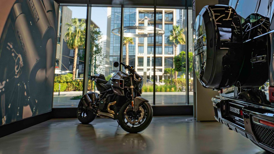 von 8: Im neuen Showroom werden aber nicht nur die High Performance Automobile präsentiert. Kunden können sich vor Ort auch über die exklusiven Luxury Day Boats von Brabus Marine sowie die Brabus 1300 R Motorräder beraten lassen.