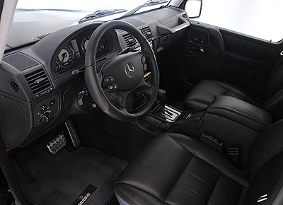 von 7: Im Innenraum des Brabus G V12 S Biturbo: Ein ergonomisch geformtes Sportlenkrad, Edelstahl-Einstiegsleisten mit beleuchtetem Brabus Logo und eine handgefertigte Brabus Volllederausstattung.