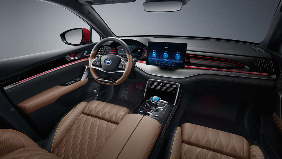 von 10: Die serienmäßige Reihe Drei im Tang ist dagegen nur für kleine Kinder etwas. Aber immerhin: Kein anderes E-Auto hat so etwas im Angebot.