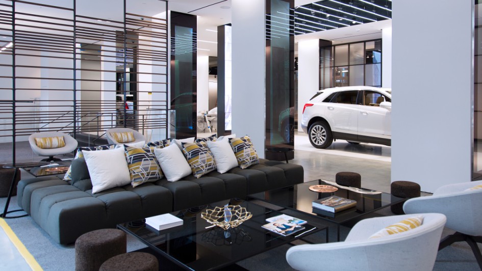 von 5: "Cadillac House" in New York: Der Autobauer versteht sein urbanes Präsentationsformat als eine Mischung aus kreativer Begegnungsstätte, Galerie, Ausstellungsraum und Café. Jetzt kommt ein Ableger nach München.