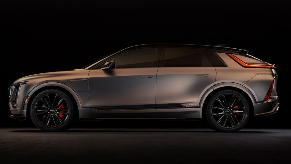 von 10: Der Lyriq-V ist Cadillacs erstes Hochleistungs-Elektroauto, angetrieben von zwei E-Motoren leistet der Allradler 624 PS bei 880 Nm Drehmoment.