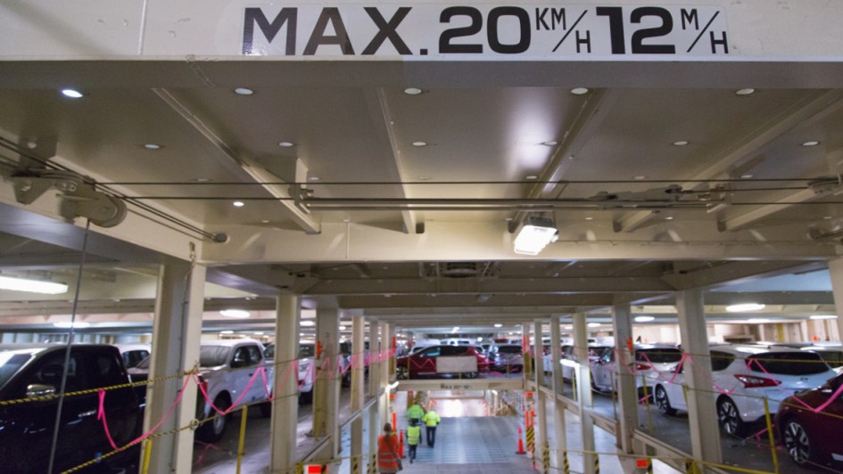 von 13: Im Inneren wirkt ein Car Carrier wie ein riesiges Parkhaus – nur, dass hier die Autos wesentlich enger stehen, und die Decken deutlich niedriger sind.
