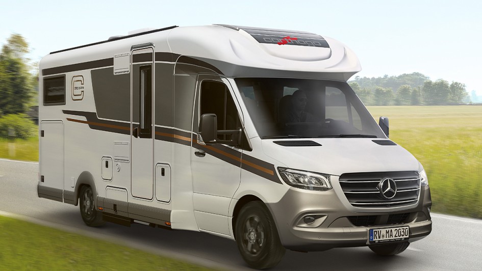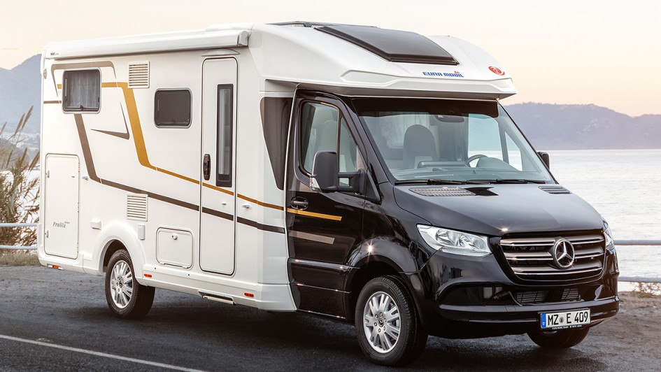 von 30: Euro erweitert die teilintegrierte Baureihe Profila, die auf einem Mercedes Sprinter-Fahrgestell mit Alko-Tiefrahmen steht, um zwei neue Varianten in der 7,50-Meter-Klasse.
