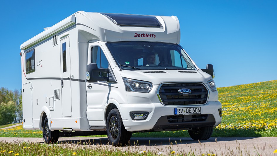 von 30: Dethleffs erweitert seine im Vorjahr eingeführte Camper-Van-Baureihe Globetrail um eine 590C-Variante mit einem Ford Transit als Basis.