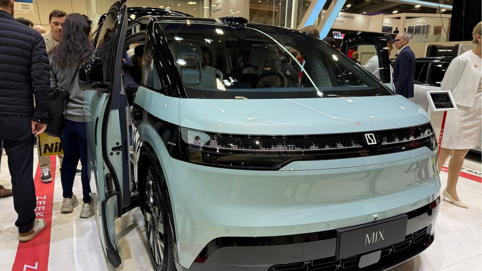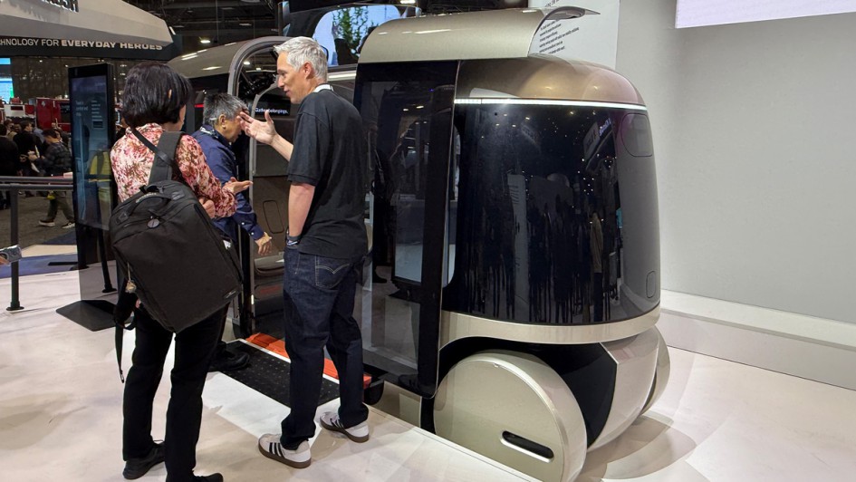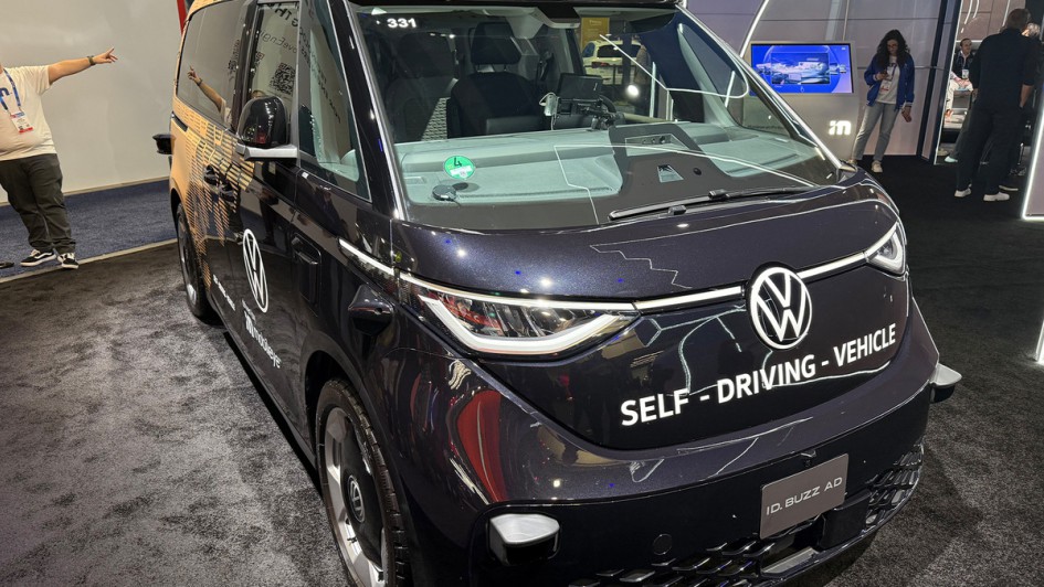 von 15: Ein VW ID. Buzz AD hat es auch in die Wüstenmetropole geschafft, gesehen am Stand von Mobileye. Die deutschen Autobauer machen sie sich mittlerweile rar auf der CES.