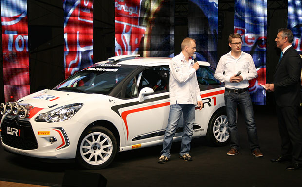 von 12: Rallye-Engagement: Lange haben die Händler das gefordert. Ab 2013 zeigt Citroën wieder verstärkt die Kompetenz der Marke im Rallyesport mit einer eigenen Rennserie. Auf dem Händlertag erklärten die Fahrer Mikko Hirvonen (li.) und Christian Riedemann (Mi.) mit Moderator Jan Stecker, was es damit auf sich hat.