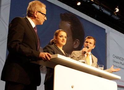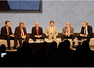 von 8: Die Händler in den Podiumsdiskussionen äußerten sich durchaus auch kritisch. Hier die Vertriebsrunde mit den Verantwortlichen aus der Zentrale.