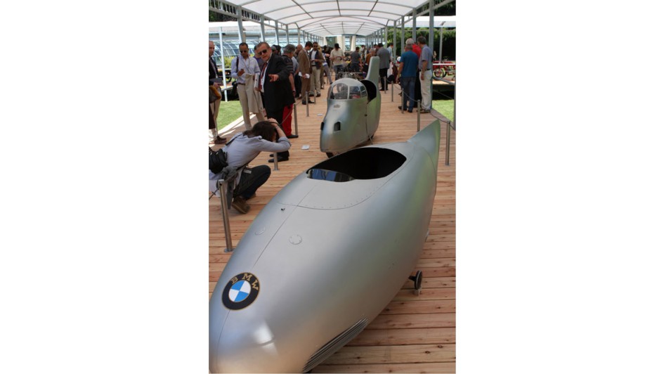 von 7: Erst erhielt 1937 die Gilera Rondine (hinten) mit 274,2 km/h den Geschwindigkeitsweltrekord, dann wurde sie von der BMW 500 mit 279,5 km/h übertroffen.