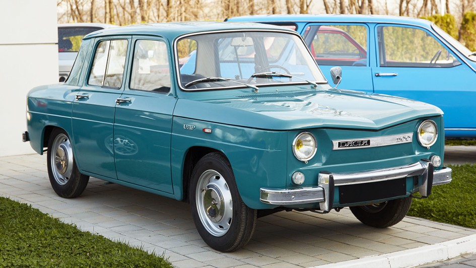 von 14: Zum rumänischen Nationalfeiertag am 23. August 1969 rollt der erste Dacia 1300 vom Band. Hier Der Dacia 1300 vor dem Parlamentspalast in Bukarest.