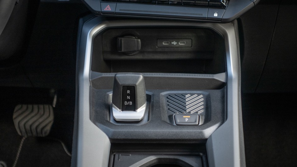 von 22: Ideal zu bedienen: Der Schalthebel des "Multimode"-Automatikgetriebes im Dacia Bigster. Die Eigenentwicklung ist jedoch nicht der letzte Schrei und zeigt, dass nach wie vor eine klassische Wandlerautomatik selten übertroffen wird. Bei "günstigen" Fahrzeugen tut es ein Doppelkupplungsgetriebe ebenfalls meist besser.