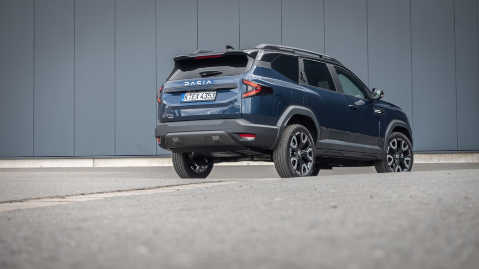 von 22: Die Formgebung des Dacia Bigster orientiert sich eindeutig am 23 Zentimeter kürzeren Dacia Duster. Der Zuwachs beim Bigster-Radstand im Vergleich zum Duster liegt bei vergleichsweise kleinen drei Zentimetern. Der Rest hängt als Überhang am Heck.