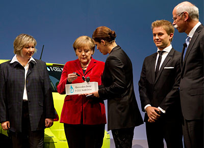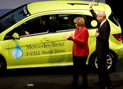 von 22: Bundeskanzlerin Angela Merkel bei der Schlüsselübergabe zum Start der F-CELL World Drive