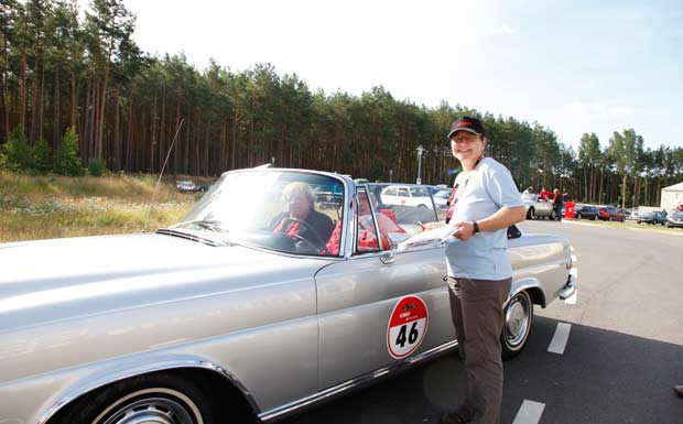 von 7: Natürlich kann es bei der Rallye auch mal einen nassen Tag geben. Links sehen Sie die Organisatorin der Rallye im Einsatz: AUTOHAUS-Assistentin Juliane Schleicher.