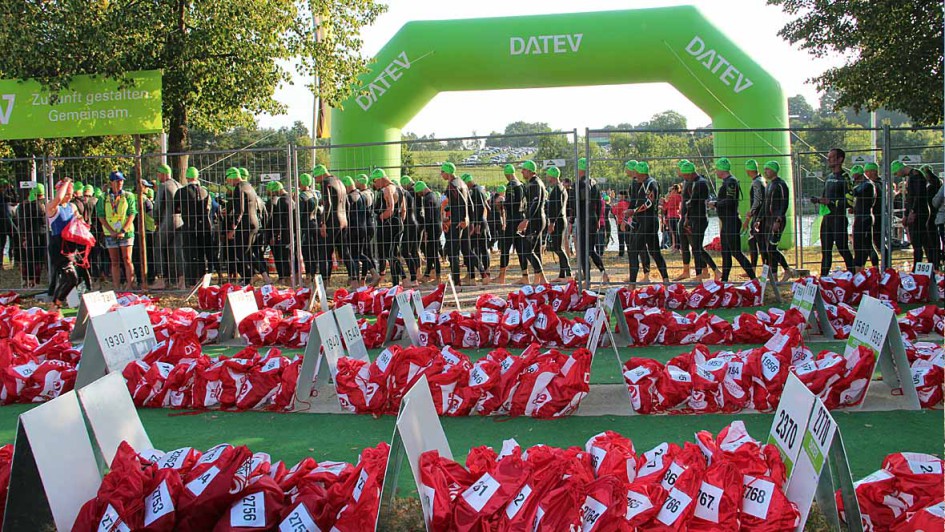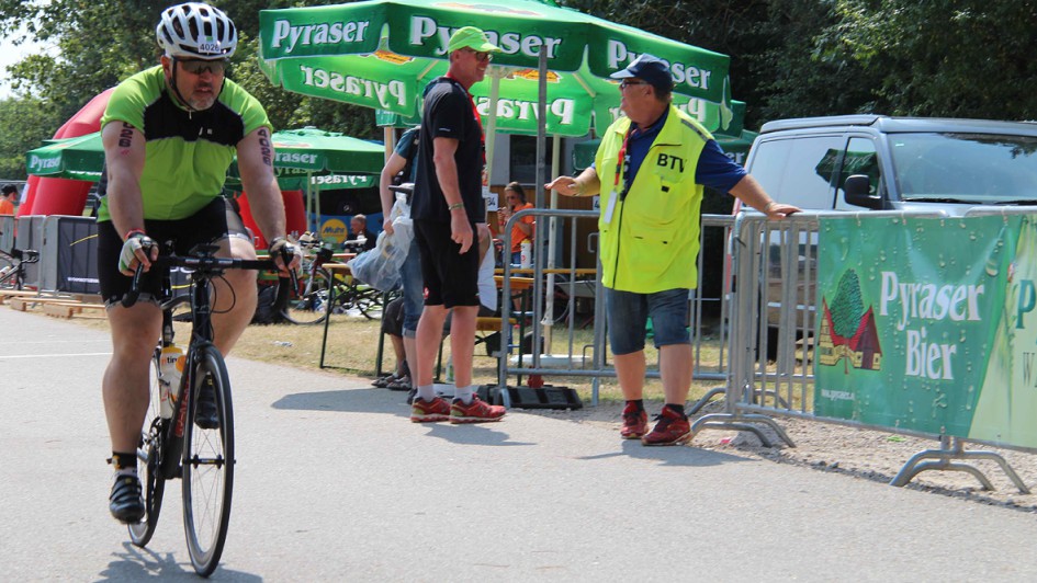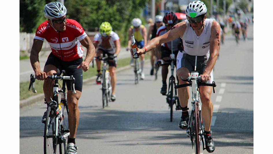 von 10: Das AUTOHAUS-Team schickte Staffeln und Einzelkämpfer bei der Triathlon Challenge am Sonntag in Roth auf die Strecke. Prof. Ralf Mertens, Kosta Mentis, Thomas Emmert, Werner Söcker, Ralph M. Meunzel, Michael Mentis, Peggy Lobisch und Jürgen Macha (von links). Nicht auf dem Bild ist Ralf Klinger.