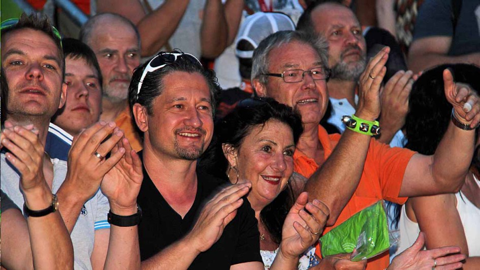 von 10: Hubert Schwarz, Coach und Ausnahmesportler, veranstalte im Rahmen seines Beneflizz-Radrennens am Samstag über die Triathlonstrecke in Roth eine Spendengala. Im Laufe des Abends konnte Schwartz den RTL-Moderatoren Wolfram Kons und Angela Finger-Erben einen Scheck in Höhe von Euro 30.000 Euro für den RTL Spendenmarathon übergeben. Weiter im Bild von rechts Patricia Kelly, Renate Schwarz, Konny Weßner und Ralph M. Meunzel