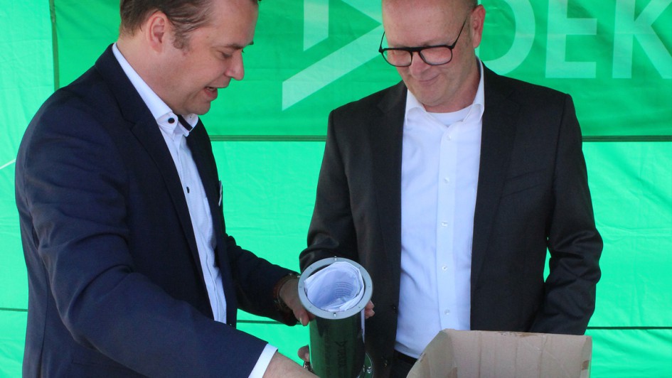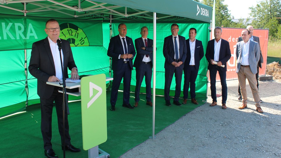 von 10: Guido Kutschera begrüßt die politischen Gäste und zur Zeremonie anwesenden Gäste, darunter Planer, Bauunternehmen und Mitarbeiter aus dem unmittelbar benachbarten Dekra Technology Center (DTC).
