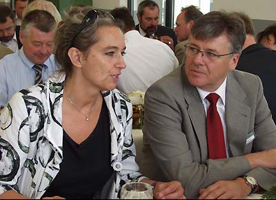 von 14: Sucht aktiv nach Lösungen, mit denen der Häufung von "Tote-Winkel-Unfällen" mit Schwerverletzten und Toten, wie sie derzeit im Münchner Raum zu beobachten sind, begegnet werden kann: Oberstaatsanwältin Petra Reitberger von der Staatsanwaltschaft München I, hier im Gespräch mit Jürgen Helfmann, Fachabteilungsleiter Unfallanalytik und Sondergutachten der Dekra-NL München.