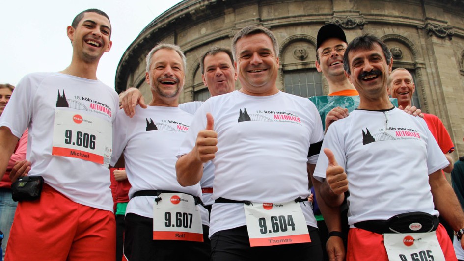 von 12: Gemeinsam mit AUTOHAUS-Chefredakteur Ralph M. Meunzel nahmen über 50 Hobbyläufer aus der Kfz-Branche am Samstag die sportliche Herausforderung beim beim 18. City-Marathon in Köln an.