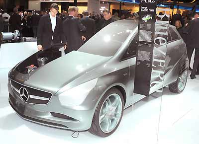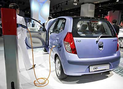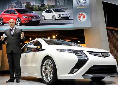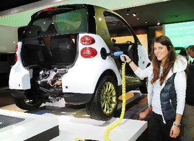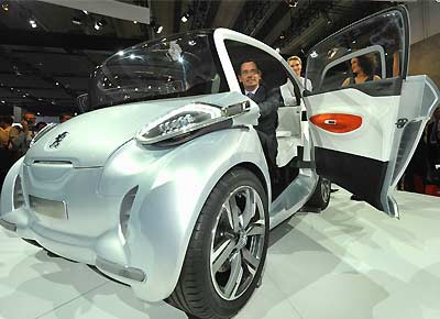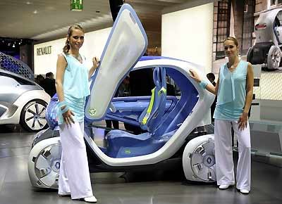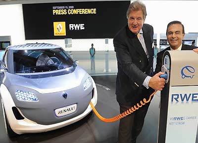 von 54: Der Vorstandsvorsitzende des Stromkonzerns RWE, Juergen Grossmann (l.), und Renault-Chef Carlos Ghosn praesentieren das Conceptcar Zoe Z.E samt dazugehörendem Stromkonzept (Quelle: Thomas Lohnes/ddp)