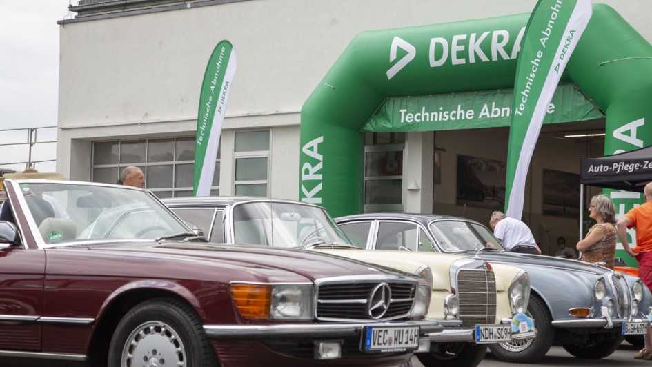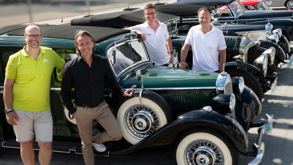 von 14: Die Santander Consumer Bank ist zum zwölften Mal Mitveranstalter der Classic-Rallye. Vor Ort dabei waren unter anderem (v. l.): Sönke Roggenbuck, Thomas Hanswillemenke, Maik Kynast und Jascha Bräuer.