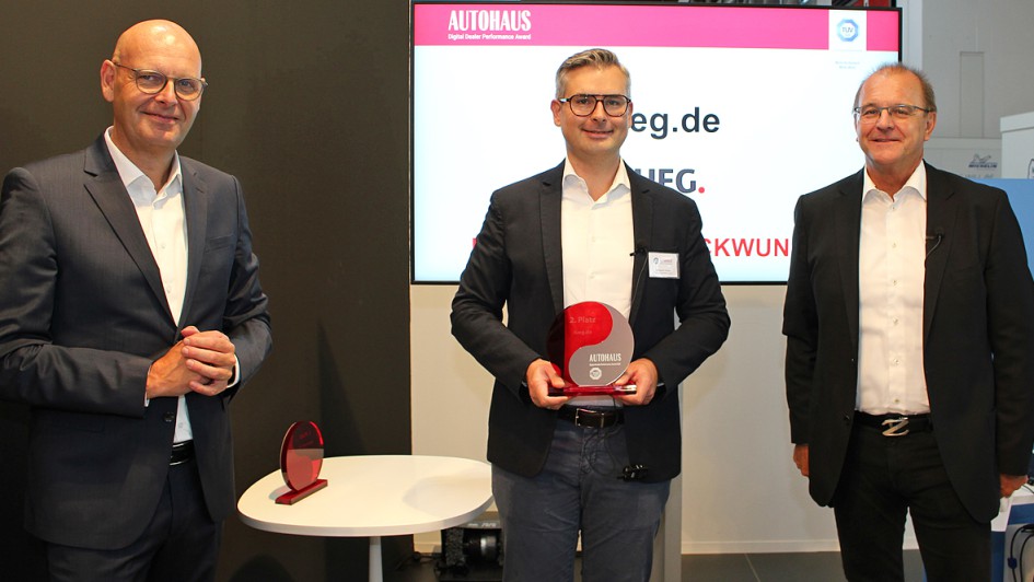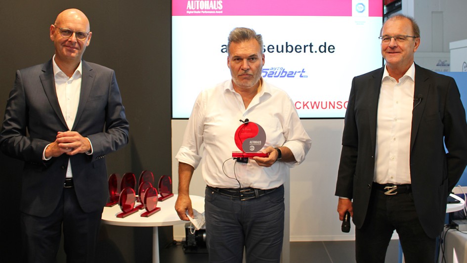 von 15: 9. Platz: Autohaus Bruno Seubert - Axel Bischopink (Chief Operating Officer TÜV SÜD Division Mobility), Bernhard Seubert (Geschäftsführer Autohaus Bruno Seubert) und Ralph M. Meunzel (Chefredakteur AUTOHAUS; v.l.n.r.)