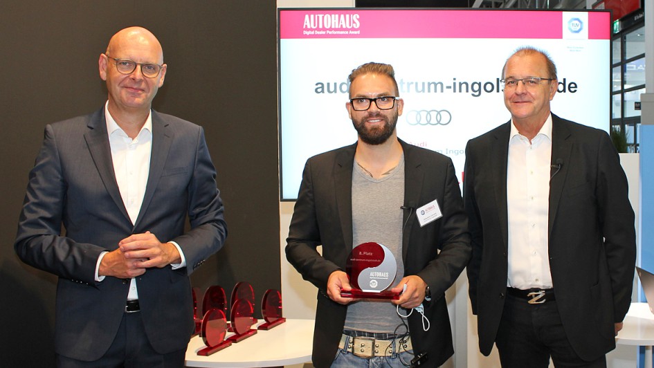 von 15: 8. Platz: Audi Zentrum Ingolstadt - Axel Bischopink (Chief Operating Officer TÜV SÜD Division Mobility), Sebastian Lohrentz (Marketingleiter Audi Zentrum Ingolstadt) und Ralph M. Meunzel (Chefredakteur AUTOHAUS; v.l.n.r.)