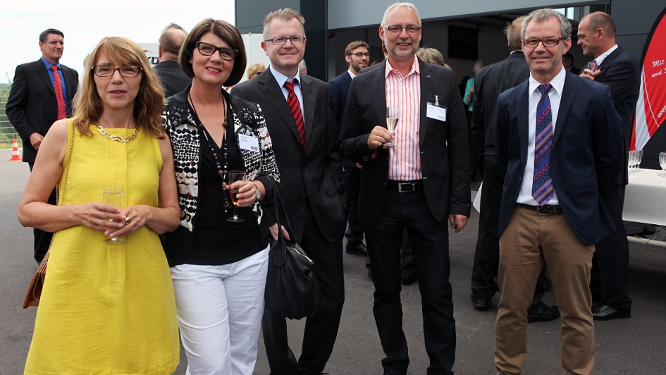 von 10: Hoher Besuch in Losheim: Anke Rehlinger (mi.), amtierende saarländische Ministerin für Wirtschaft, Arbeit, Energie und Verkehr sowie Stellvertreterin von Ministerpräsidentin Annegret Kramp-Karrenbauer, nahm zusammen mit KÜS-Bundesgeschäftsführer Peter Schuler und dessen Gattin Sibylle die Eröffnung des neuen Technik- und Prüfzentrums vor.