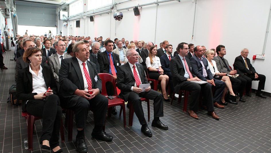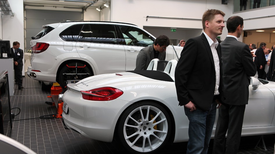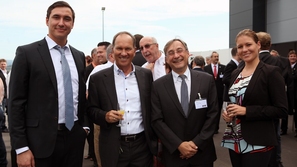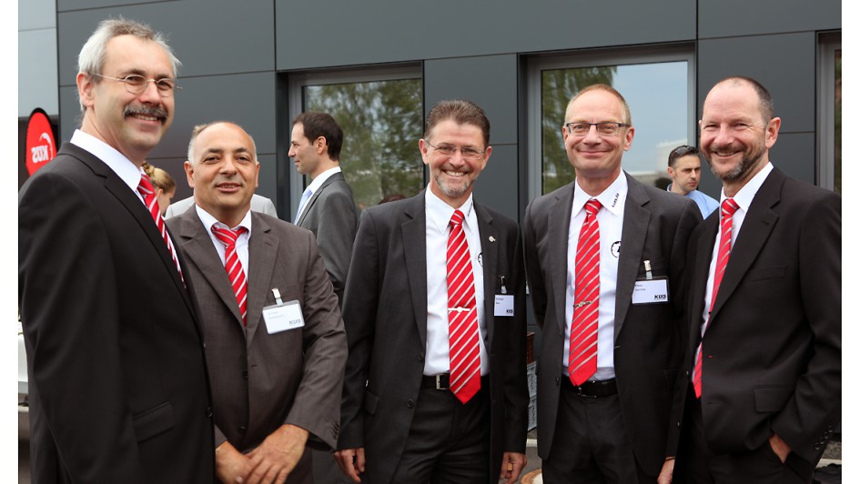 von 10: Christoph Diwo, langjähriger Technischer Leiter der KÜS (mi.), und seine Kollegen freuten sich sichtlich über die neuen Möglichkeiten, die sie mit der KÜS Technik GmbH durch den Neubau haben.