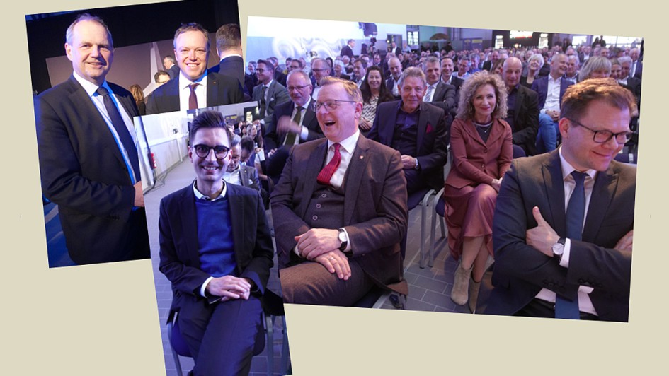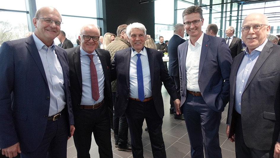 von 28: ZDK-Präsident Jürgen Karpinski (o.li.) machte deutlich, welche Kraft in den mittelständischen Familienbetrieben in Deutschland steckt. Neben der persönlichen Würdigung für den Vorstandskollegen Helmut Peter artikulierte der Präsident verbandspolitische Anliegen - von der Umweltprämie bis zur Forderung nach E-Fuels.