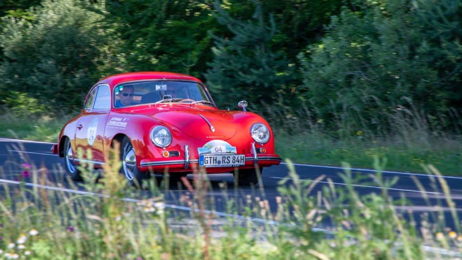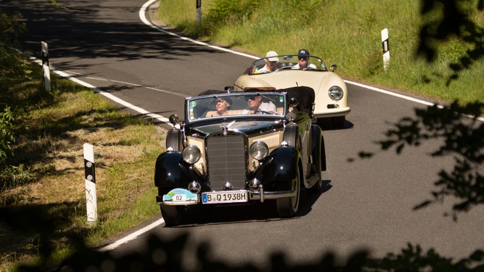 von 14: Sehenswerte Paarung: Mercedes aus 1938 und Porsche 356 Speedster von 1956. Im Benz fuhren Silva und Gerd Dressel, Dressel Pkw-Service. Im Porsche Peter Klingenmeier und Peter Hirner, APZ Auto-Pflege-Zentrum.