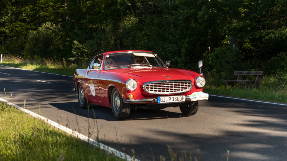 von 14: Seltener Blickfang: ein Volvo P1800, Bj. 1965. Das Team (#14) dahinter: Dominik Weber, Svenscars, und Sebastian Dumrath, Volvo Car Financial Services.